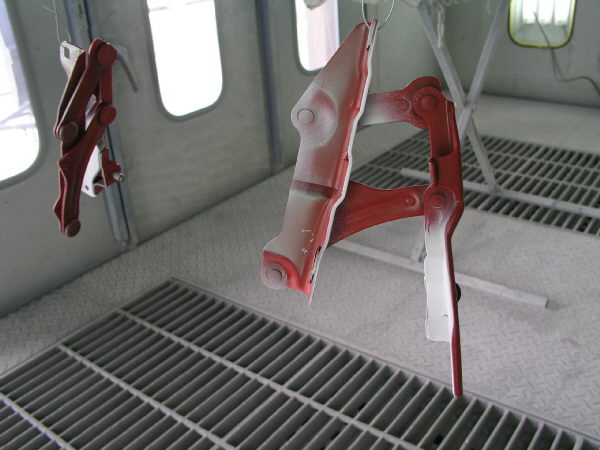 ヒンジの干渉部も塗膜強度を上げるため、一旦剥離した後サフェーサーを塗装します。 |