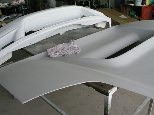 フード&フロントバンパーはFRP製品の為、ハイビルドタイプのサフェーサーを塗装します。 |