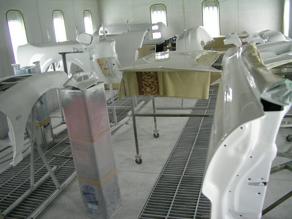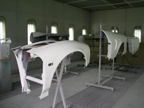 塗装した部品を全員集合させて、強制乾燥にて塗料の硬化管理をしている図です。 乾燥中、部屋の中は約75度前後まで温度が上昇します。 夏は非常に暑く、冬は逆にありがたい空間でもあります。 |