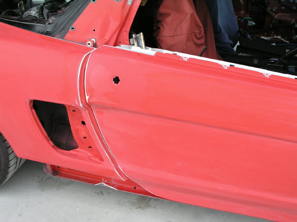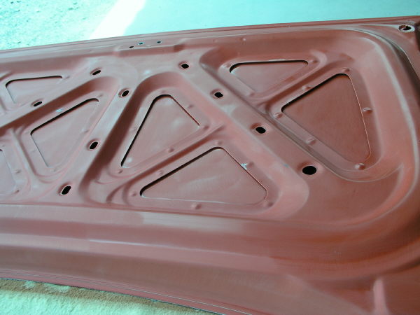 普段あまり見えない部分のバックパネルもしっかり足付けします。 こうしておかないと、後々追突された時などに入庫して修理する際に ↓こんな会話が聞こえてきますね〜 「塗装引っ付いてないやんけ〜」どこの誰やねん〜こんなうっとおし仕事するんは〜〜〜(怒) な〜んてことにならない為です。 |
